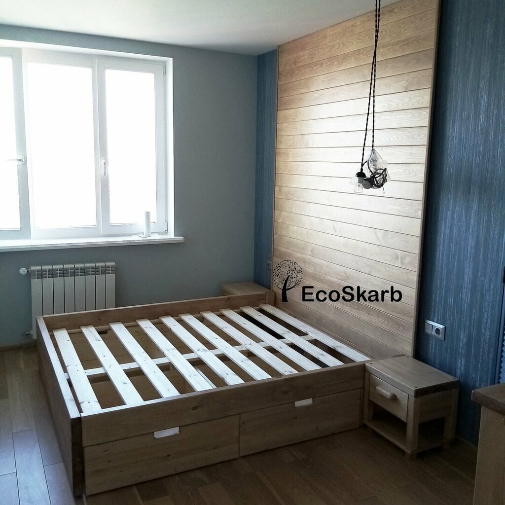 Двуспальная деревянная кровать ЭКО из массива сосны. В производстве продукции применяем только экологичную и качественную древесину, используем цельную доску хвойных пород камерной сушки.