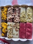 Очень вкусное мороженое с горгонзолой, фисташкой, манго. Брауни конфеты, торт мороженое четвертинки понравились вкусы с фисташкой и карамель пекан. Очень необычное мороженое. Также нравятся основы для горячих напитков с облепихой и другими вкусами, удобно.