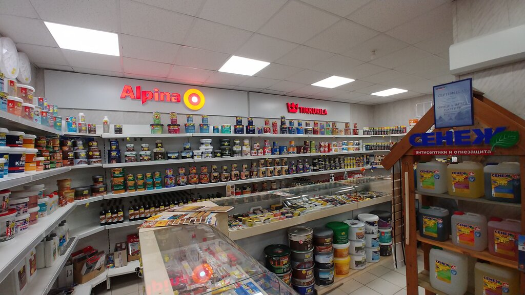 Отличный выбор красок и качество на высоте, Очень внимательные и знающие продавцы - про краски консультируют великолепно. Также куча всякой электрики - всё, что нужно. Цены - как в среднем в специализированных магазинах.