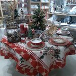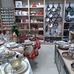 Небольшой магазин с товарами для приготовления еды и сервировки стола. Сейчас в продаже яркая коллекция столовой посуды и габеленовых скатертей с салфетками российского производства для празднования Нового года и Рождества, создающая особое настроение и атмосферу праздника в доме.