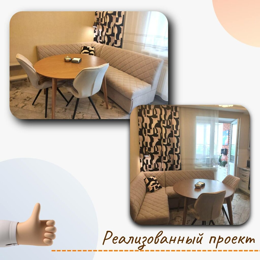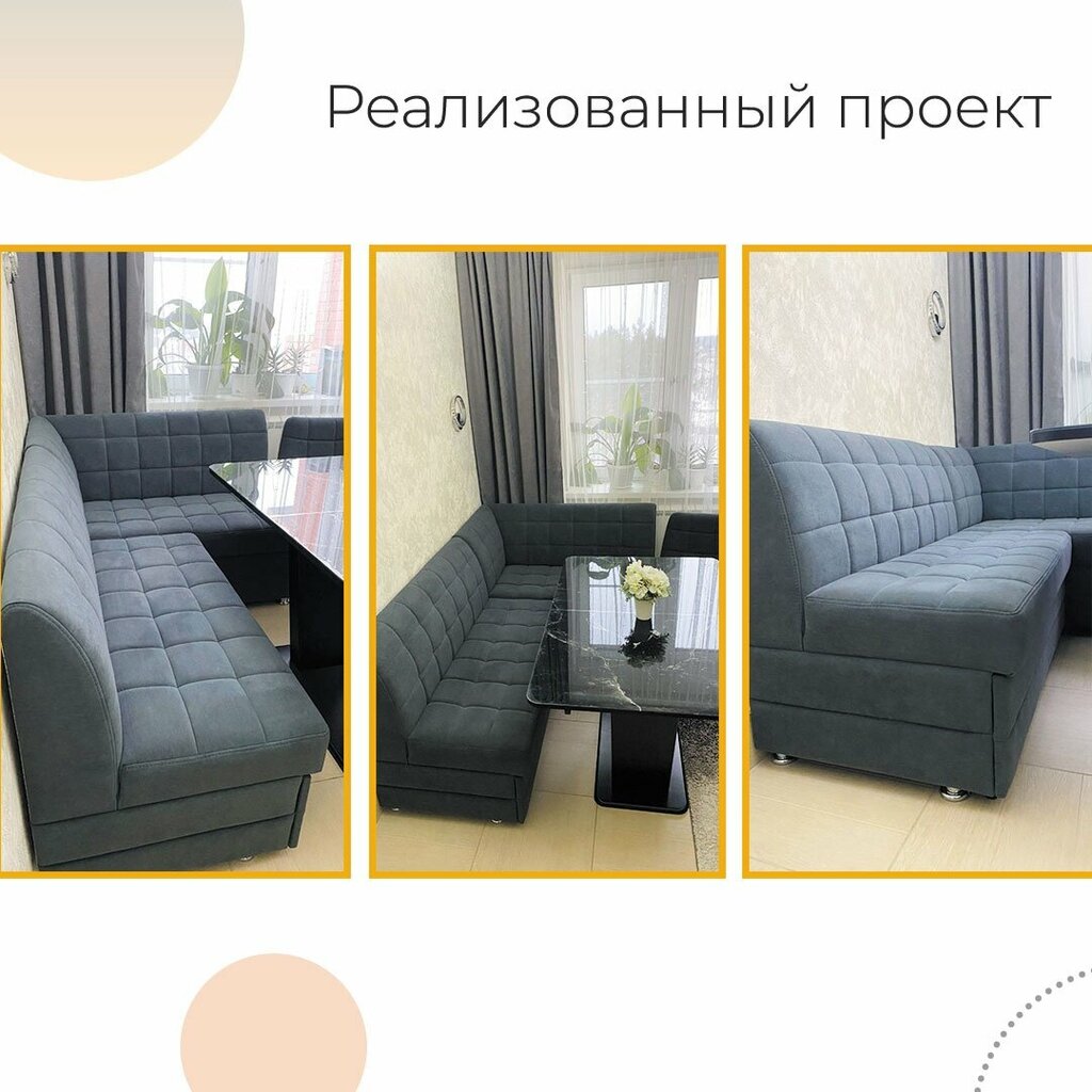 Заказала два дивана на кухню. Заказ выполнили очень быстро. В шоу руме сотрудник посоветовал ткань и предложил несколько моделей - советы грамотные, и модель и ткань - я считаю - выбраны идеально. Сидеть на диванах очень удобно. Отдельное спасибо за доставку - заказ мне привез Денис - очень пунктуальный, вежливый - быстро занес обернутые в целлофан диваны, очень быстро их собрал. Мой вывод о компании Аната мебель - все бы так работали!- спасибо большое! Надеюсь, диваны прослужат долго