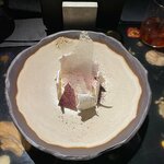 Сугудай из маринованного в свекле кижуча под пряной заправкой с икрой палтуса