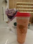 An authentic, pleasant place. The interior is decorated in white and red shades. There is a relaxation area, as well as a second room with tables. The drinks are varied, the volume of tea is five hundred milliliters. A comfortable glass, comfortable to hold in your hands. The plastic is sturdy with a removable lid. The tea is unusual, I ordered it with a peach, there was also jelly inside and, in my opinion, grapefruit.