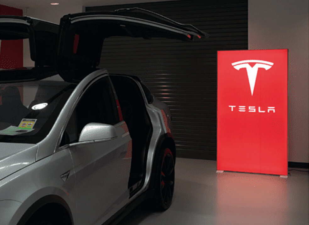 Стенд представляет тонкий алюминиевый каркас , на который надевается тканевое полотно с изображением.