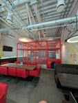 A wonderful cafe. It is especially pleasant to have breakfast here on weekdays: either there are no people at all or very few. It is convenient that there is a children's area, the only thing is that if you have a small child, and adult children are playing there now, it will be dangerous for your baby. There was also a case on a weekend evening that there were a lot of adult children in the play area who were doing mayhem, shouting, scattering everything, a large number of balls were in the hall and the parents did not make comments to the children and the staff, at least about the balls in the hall, also did not want comments. Otherwise, I like everything. The food is delicious, there is a wide selection, and the staff is friendly. There are various promotions and a bonus system in the mobile application. I advise you to visit.