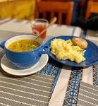 I highly recommend this cafe!Colorful interior, cozy!The food is homemade, very tasty!We ate chicken soup, a cutlet with mashed potatoes and compote.I advise tourists with children!