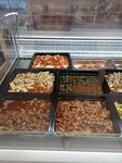 Большой ассортимент различных закусок, деликатесов. все вкусно. Покупала маринованную говядину, очень понравилась. Такая мягкая и в меру приправьенная. Обслуживание хорошее, продавец дает продигустировать продукты.