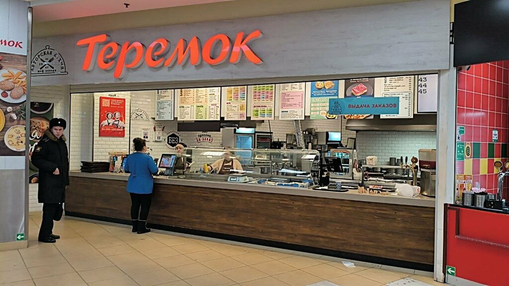 Теремок - лучший выбор на фудкорте. Народа много везде, зато в теремке всё делают быстро, можно наблюдать прогресс и подбадривать повара, который печёт тебе блин, ешь всегда горячее, а главное всё вкусно очень! Я больше всего люблю брать сытный обед. Вкуснейший сырный суп, большой фермерский блин, который оправдывает название обеда и прекрасный клюквенный морс. Потратил меньше 500₽, а наелся на весь день, а ещё, благодаря их приложению, получилось сильнее удешевить заказ, что сильно подняло настроение! Но больше всего мне приносит удовольствие сервис. Когда к тебе обращаются "Сударь", то начинаешь чувствовать себя важным и проникаешься русской эстетикой. Сегодня кстати я сильно удивился, оказывается в теремке не только ресторан украшают, а ещё и посуду меняют. Новогодние тарелочки, которые показываются после, того как ты доел блин - удваивают приятные ощущения от обеда и сохраняют в тебе теплые чувства до следующего захода в это дивное заведение