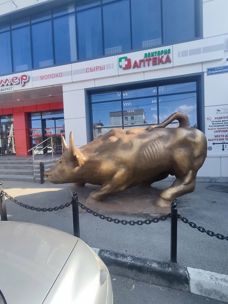 Если сделать каталог скульптурных достопримечательностей нашего поселка, то в него обязательно войдет голова политического деятеля диаметром 1,5 метра и бык. Кроме этого, пока утеряна женщина с веслом, но должна где-то быть. Бык стоит, а голова лежит — это реальность. Бык стоит на постаменте, на котором пришлось построить приличный ТРЦ, поэтому возникает двойное толкование. Если бык на крыльце, то тогда он должен быть зайцем. Сонный заяц, который вышел по своим делам на крыльцо, является символом или даже характерным признаком нашего поселка (села — есть церковь). Уже есть бык на постаменте вместе с ТРЦ, на очереди заяц на крыльце и огромное количество желающих полапать эти культурные достопримечательности. Но от этого ни куда не денешься, пусть лапают на счастье.