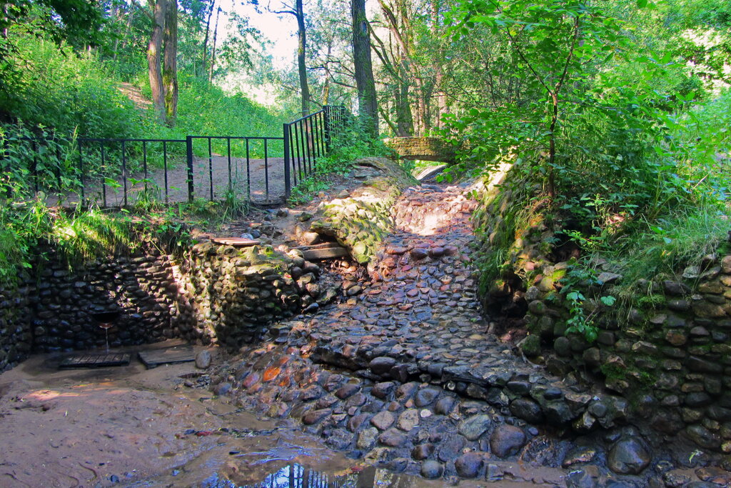 Все находится в запущенном состоянии администрация просто позабыла это место.С коляской даже не вздумайте идти,если конечно у вас море сил на спуск и подъём то пожалуйста.В сырую погоду и после дождя не рекомендую туда ходить так как будет очень сколько и грязно)) С одной трубы течёт с привкусом железа с другой тоненькой струйкой более менее водица )