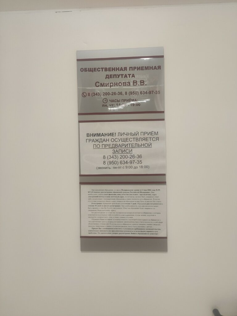 Приёмная депутата законодательного собрания Свердловской области Смирнова В. В.