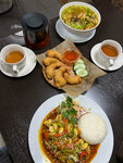 Рай для интровертов! Если вы хотите уединиться и в тишине насладиться Вьетнамской кухней — это идеальное место. Ходили в ТЦ Пирамида на Московском проспекте. Порции здесь просто огромные. Наелась половиной порции одного вока. По моей просьбе убрали из блюд нежелательные ингредиенты. Для меня это очень важно, потому что у таких гастритников как я желудок крайне восприимчивый 😬 Исходя из моих предпочтений мне порекомендовали вок "Фо сао". Я взяла с морепродуктами. На выбор можно ещё с курицей, говядиной и свининой. Блюдо очень понравилось. Ломтики кальмара мягкие и без шкурки, а не как резина в других вьетнамских заведениях. Нежная рисовая лапша. Большие и сочные тигровые креветки😋 Нет тонны ядрёных специй и чувствуется вкус еды! Брала ещё салат "ТЭК КЭМ" с курицей (нас же никто не предупредил, что порции большие и столько съесть задача не из легких😂). На выбор можно с говядиной и креветками. Вкус очень необычный. Курица сочная, нежная. Но самая изюминка - это хруст 🤤, который не передать словами. Муж брал суп "Том ям". Сама не пробовала, так как не любитель острого, но довольное и удовлетворённое лицо говорило само за себя 😁🤭 Ещё брал себе вок "Миен Сао" с курицей. Основа из стеклянной лапши, или проще говоря фунчозы. Тоже очень вкусный и насыщенный вок с древесными грибами. В других ресторанах вьетнамской кухни все острое и куча специй, которые напрочь перебивают вкус продуктов (да, я понимаю, что это специфика кухни), а тут идеальный баланс. Найдутся блюда для любителей острого, и для тех, кто не любит тонны приторных и ядрёных специй. Съесть это все за один раз было невозможно, поэтому попросили завернуть с собой. Остались довольны атмосферой, вкусной едой, которую принесли очень быстро, и вежливым персоналом. Обязательно сюда придём и не один раз!