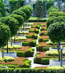 Французский сад. Так называется одна из самых «геометричных» частей парка «Краснодар». Здесь невооруженным взглядом видна четкая симметрия, стриженные в несколько ярусов кустарники, живые изгороди. Кадки с клёнами равномерно распределены по аллеям. Вокруг них высажены живые изгороди из лавровишни (кустарники с зелеными листьями) и фотинии (кустарники с красными листьями).