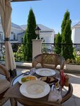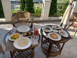Останавливались в полулюксе с шикарным балконом, номер большой, красиво обставленный, шикарная ванная, есть принадлежности для душа, тапочки, халаты, вода, чай. Территория отеля небольшая, но очень уютно, красиво. Завтрак континентальный очень вкусный и сытный готовят ко времени, к которому закажешь.