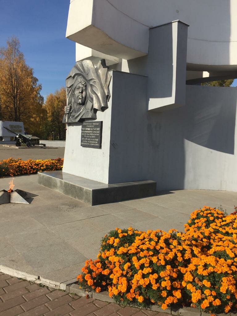 Памятный знак Орден Победы и мемориальная доска с барельефом Григория Булатова