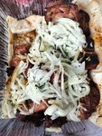 Вкусное, свежее мясо! В холодильнике стоят соусы, брали белый — лучший белый соус, что мы пробовали. Предлагают завернуть шашлык в лаваш — соглашайтесь, он пропитывается соком из мяса и получается очень вкусно! Добавили ещё маринованный лук... это лучшее сочетание. Спасибо нашим поварам за то, что вкусно жарят нам😘