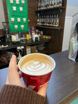 Мне очень нравится здесь кофе ! Лучше в этом городе я ещё не пробовала. Заказывала здесь капучино с корицей и фрапучино. Приветливый бариста, качественно делает свою работу 👍🏻 Спасибо за вкусные напитки! ☀️