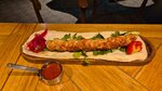 Хинкали с креветками, томатами и маринованной чукой
