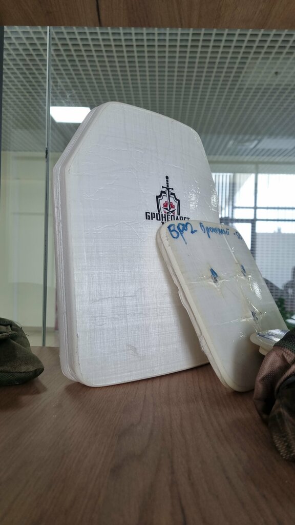 Выполнена из СВМПЭ (сверхвысокомолекулярного полиэтилена высокой плотности) + керамика (9мм) Прошли испытания и соответствуют требованиям ГОСТ 34 286−2017 для класса Бр 5