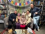 Специально пошли к памятнику. Ожидала, что он будет ну очень маленький, судя по отзывам. Но нет. Маленький, но не крошечный. Необычный памятник. Рядом магазин, но в него не попали, поздно уже было. Зато возле магазина украшения висели, тоже необычно - мелочные шарики в зелени. Люблю все необычное.