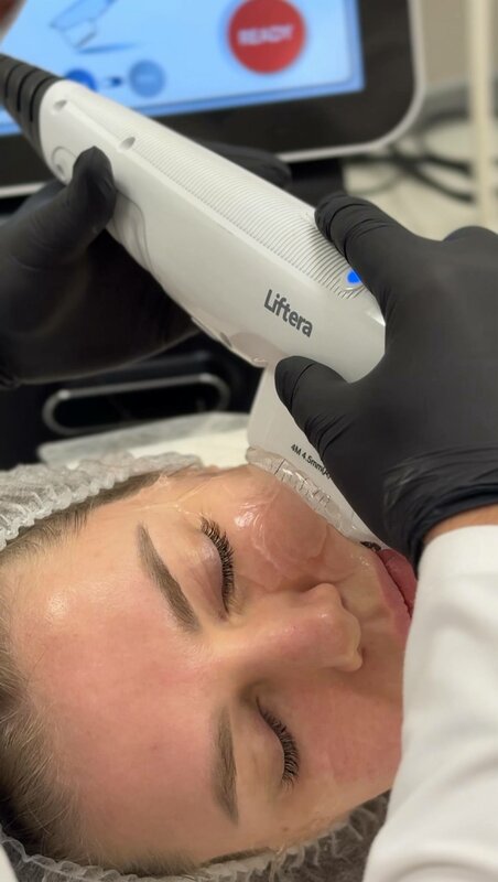 Аппаратное воздействие радиочастотной энергией через микроиглы для уплотнения кожи и улучшения ее тонуса в выбранной зоне. Клиника Smile Boutique Clinic, Невский проспект 19, СПб