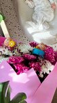 Блестяще справились с задачей собрать оооочень стойкий букет в шляпной коробке для юбилея моей бабушки. Предложили красные розы, кустики, лимониум, эвкалипт… Результат именинница оценила, говорит, что это самая роскошная композиция в коробке из всех, что ей дарили ранее. Мне предварительно прислали фото на одобрение. Доставил приятный курьер чётко по времени. Цветы, действительно, долго стоят без намёка на увядание, хотя мы потаскали их с собой и в томск, и в ресторан, и в такси! Соблюдаем рекомендации по уходу за букетом. В общем, у меня только положительные эмоции от заказа и благодарность! Через некоторое время на выписку муж заказывал букеты для врачей и нам - мы все остались очень довольны. Дополнения в букете в виде пупсов просто покорили!