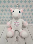 Великолепный магазин и очень быстрый сервис! Заказала игрушку с вышивкой для новорожденного и осталась очень довольна. Сделали красивую вышивку, все пожелания были услышаны. Сама игрушка-единорог большая, милая, упаковано в красивый подарочный пакет. Привезли в офис мужу в Москве, магазин и курьер постоянно были на связи. Завтра будем вручать наш подарок:) Спасибо большое Андрею С. «Плюшики» за безупречный сервис и работу!
