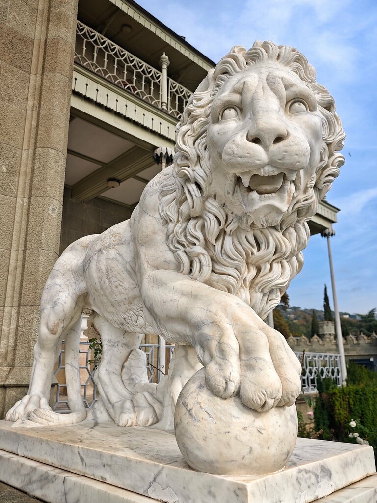 Великолепное всё: львы, вид на дворец, на горы, на море. Помимо статуй львов, в нижнем парке также есть статуи каменных баб