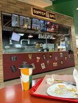 Бургер хороший, но булочка слегка суховата. Сочные котлеты, качественные, свежие ингредиенты. Конкуренции на этаже мало. Цена соответствует качеству. Персонал приветливый.