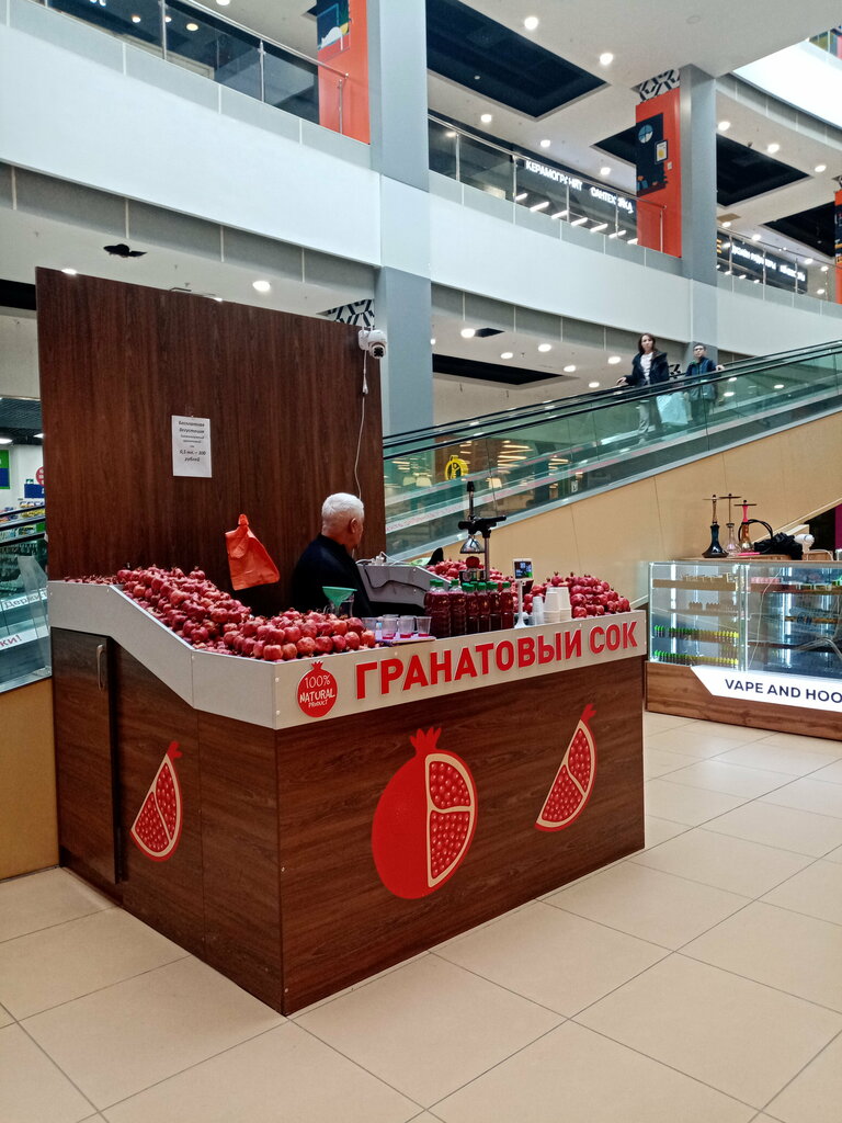 Самый ужасный сок из свежевыжатых гранатовых, который я пила. При покупке парня продавца попросила выдавить сок при мне, упорно отказывался, ссылаясь что он 10 минут назад выжал сок в бутылку. Хорошо, не стала спорить, взяла. Сок по цвету разбавленный, как будто бы с лимонным соком, очень кислый, попадались кусочки мякоти, как будто бы от лимона. Очень сильно красит язык, прям слюна розовая, как от красителя, от настоящего гранатового сока такого не бывает