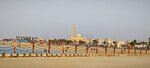 Large free beach. The sea is clear, not too deep. There is almost no shade, you need to take an umbrella or something similar with you. There are paid sun beds with umbrellas - 150 dirhams per adult for a sunbed on the first or second line for the whole day, then 120 dirhams, a child is free if without a sunbed and umbrella. If with them, then 80 dirhams. Lots of cafes, fast food. There are toilets, showers and changing areas.