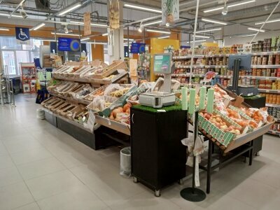 В принципе всё понравилось, хороший ассортимент продуктов. Можно выбрать из разностороннего вида разных продуктов на любой вкус и цену. Кассир обслуживал быстро. Широкие проходы, давки нет, ко всем прилавкам можно подойти свободно... Минус в том, что мороженое в лотке лежит хаотично относительно ценников, трудно сориентироваться по цене за товар!.. Минус получился также: когда домой принёс упаковку зелёного лука 180г внутри обнаружил несколько перьев лука увядших и грязноватых... Больше замечаний нет. Итог: 4,8 оценка!..