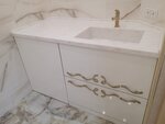 Огромное спасибо за качественную мебель и сборку! Отличные профессионалы в салоне Румянцево! Грамотные ответственные люди с хорошим вкусом менеджеры Карина, Семен. Отдельное спасибо лучшему резчику камня Владимиру Козарезу за отличное исполнение и грамотный подход. А так же благодарю технологов и мастеров на производстве. Тумба с интегрированной раковиной в столешнице из искусственного камня, со встроенной закрытой под фасад стиральной машиной.