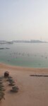 Everything is fine, a clean, well-groomed beach, right behind it an underground parking lot 500 meters long, good fine sand, very rare shells, stunning views of skyscrapers, yachts and private houses on the branches of a palm tree. Swimming is prohibited after sunset, and throughout the beaches, without exception, it is allegedly not safe in the dark, because of predatory fish. They didn't check it out)