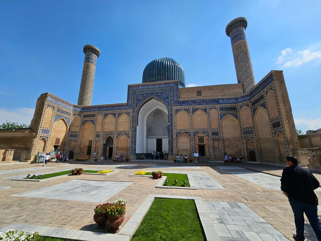 Its name is Gur-e Amir. The great commander and the legendary lion of history, Amir Timur, rests here. Contrary to popular belief, his tomb is not the large one but the smaller, black one. Around him, his sons and close relatives are also buried. The interior and exterior of the mausoleum are like a separate paradise. It’s truly a miraculous place. This is a must-see masterpiece. I highly recommend it.