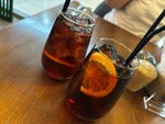 Были вдвоём. Заказали кофе американо,чай молочный улун,салат , ассорти маленьких хачапури,мясное ассорти. И с собой: пури, хачапури с грибами. За всё 7200 совсем немного. ВСЁ ,вот прям ВСЁ что заказали,вкусное . Уютная атмосфера,удобные места,предупредительные и вежливые официантки. Пустая посуда на столе не стояла. И все блюда подавались вовремя не образуя гору ожидания. В общем отдохнули хорошо. Проведенные 2часа оставили только положительные впечатления