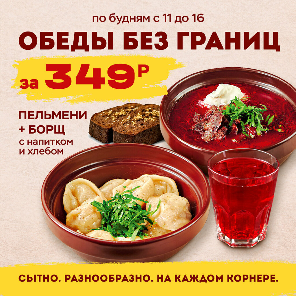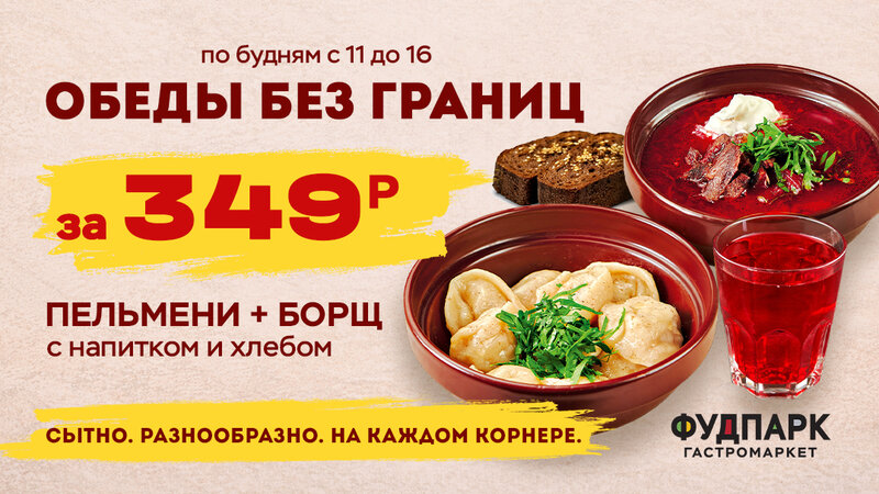 🥰 Сытные обеды без границ – по 349 р. На всех корнерах Фудпарка! Каждый день разные! В будни с 11 до 16 ч. Самый большой выбор в городе: 💥...