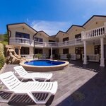 Очень хорошая гостиница. Очень чисто, красиво. Номера все комфортабельные, всё есть: телевизор, холодильник, кондиционер, душевая с феном, мебель вся новая, хорошая. Есть открытый бассейн, который регулярно чистят. Территория ухоженная, красивая, огороженная. Для детей устраиваются дискотеки. Пляж недалеко, галечный. Хозяйка постоянно следит за порядком. Всё понравилось. Рекомендую.