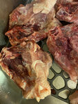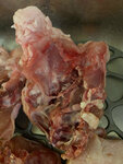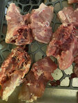 Мясо брали там несколько раз, особых претензий не было к свинине, говядине, субпродуктам НО… Купили бедра куриные, 5 штук. Вес около 2 кг, сразу не посмотрели, убрали в морозилку. Недавно достали и ахнули. Вместо бедер - спинки с кусочком бедра, с гузкой и куском кожи с жиром! И так каждый кусок! Специально заморочились и взвесили отдельно: кожа с гузками 900г, спинки 520 г, кусочки бедра с 1 косточкой 450г! Бедро не целое, в лучшем случае половина, на одной косточке. Позор, так обманывать! Там же брали пельмени домашние, все расклеились по шву при варке, начинка сухая, невкусные.