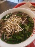 Посетили впервые сие заведение в день военного разведчика (05.11.2025). Пахнет вкусно специями. Играет расслабляющая фоновая музыка. 1. Фо Вит с уткой (450₽) - 5 баллов! Наваристый бульон, нежная утка. 2. Фо Бо с говядиной (450₽) - 5 баллов! Наваристый бульон и нежная говядина. 3. Том ям (550₽) - 4 балла. В меру острый, начинка: креветки, кальмар, шампиньоны, кинза, обычные помидоры вместо черри и Внимание👇 неожиданно а н а н а с! Бульон не очень насыщенный, поэтому 4 балла. В целом, разведка удалась. Из минусов - грязные стены, которые так и хотелось помыть влажной салфеткой.., но её при себе не оказалось. Цены демократичные.