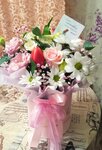 Выше всех похвал, уютное место где заботливые девушки подскажут, помогут с выбором и соберут красивейший букет😍😍😍 Цветы свежие, красивые, спасибо большое за Ваше отношение, видно, что все с любовью и заботой делается, успехов и процветания! Девушки, спасибо большое за букет)