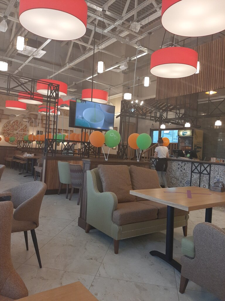 Хорошее семейное кафе!!! Не дорогие цены, и вкусная еда!!! Достаточно много столиков, очень удобная посадка!!! Официантки хорошо одеты в униформу и всегда готовы подойти!!!
