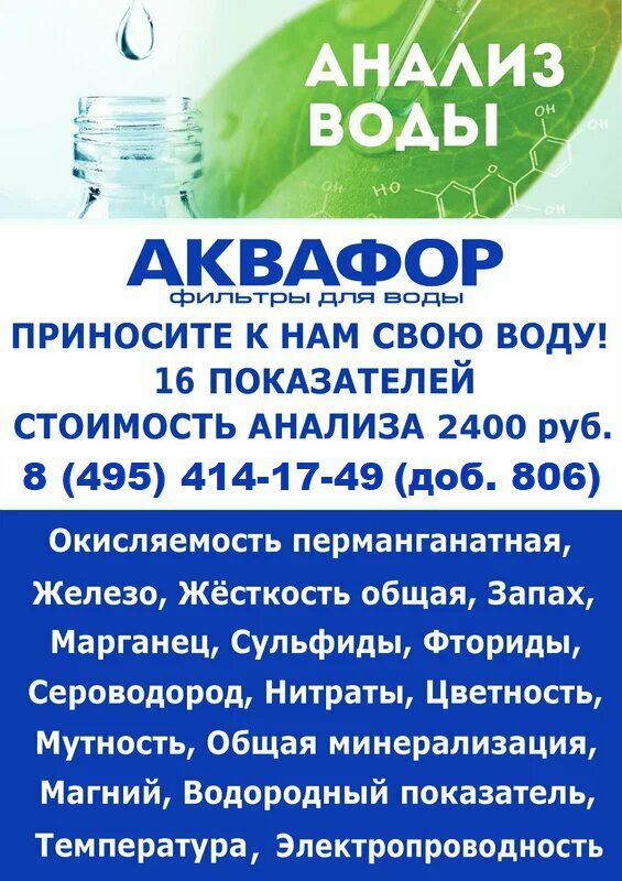 Анализ воды 16 показателей