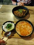 Вкусная лапша с курицей, красивая подача, цена соответствует качеству и уютное место 👍🏻