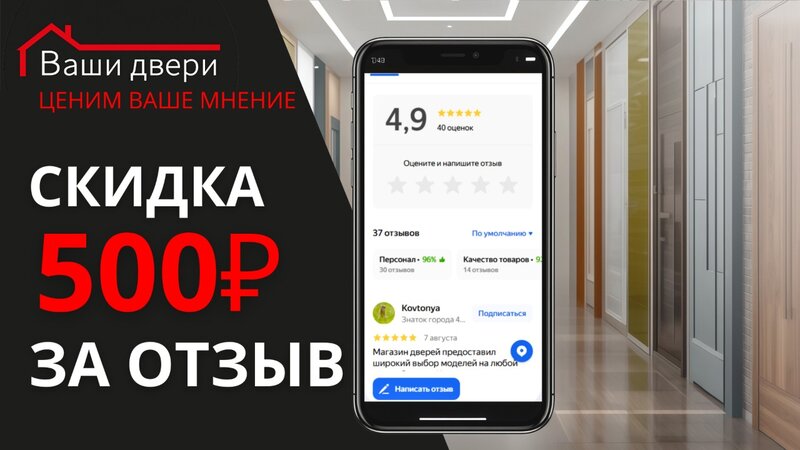 500 рублей за отзыв! Мы ценим обратную связь и готовы за неё платить. 💬 Оставьте отзыв — получите скидку 500 ₽ 1️⃣ Отсканируйте QR-код в ...