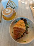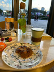 Что-то среднее между кафе и рестораном. Интерьер приятный,спору нет. Обслуживание - средне-посредственное, создаётся ощущение,что официантам не очень то и интересна их работа.Чуть больше вовлеченности нужно. Еда - приемлемая,даже вкусная.Но в последний визит взяли круассан с шоколадом(на фото),это смех,конечно.Причём это не круассан даже,но официант посоветовал и назвал это круассаном. Ценник на напитки - неадекватный,дороже той же сыроварни,которая по статусу на голову выше. В общем и целом,заведение тянет на четвёрку.Ни негативного впечатления,ни крайне положительного не осталось.