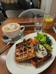 Объемный лайк. Интерьер изящный, уютно и со вкусом. Меню шик, много очень интересных, необычных позиций, финиковый пирог, вафли с тыквой и креветками и др. Хороший кофе, вкусный фреш. Приветливый персонал, бонусная система. Ценник вполне приемлемый, порции щедрые. Люблю завтраки, здесь готовят вкусно, вернусь обязательно.