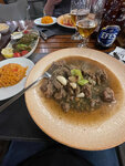 Great restaurant. We were here for the first time and were very pleased. For the first time we ate kebab in a clay pot, it is very tasty. Great interior and service. Prices are slightly above average, tips are included in the receipt. And a wonderful dog that hangs out in front of the entrance.