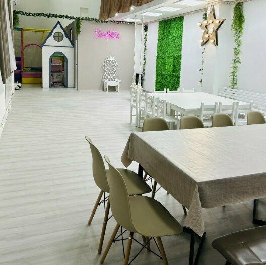 Чудесное место! В жизни даже ещё красивее и уютнее! Места много и игрушек для разных возрастов, дети в восторге, взрослые тем более! Понравилось очень, что взрослое место в своем стиле, стол большой, для нашего совместного двойного праздника было идеальное решение праздновать у вас! Большое спасибо, место- куда хочется вернуться!💞 + вежливый и доброжелательный персонал + своя парковка + детская и взрослая зоны + интерьер, много разных игрушек и развлекалок