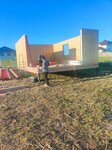 Хочу поблагодарить Сергея за мой прекрасный А-Фрейм. Изначально я планировала строить каркасный дом, но в процессе пришлось сменить исполнителя. Я очень рада, что нашла Сергея, он использовал часть моего материала, Сип панели они производят сами. Все быстро и аккуратно смонтировали, Отделку будем делать позже.